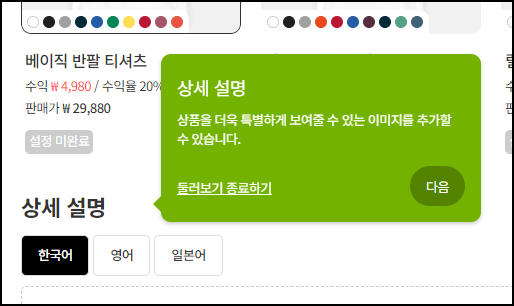 아래쪽에서 쿠폰받고 판매 시작 버튼을 클릭합니다.