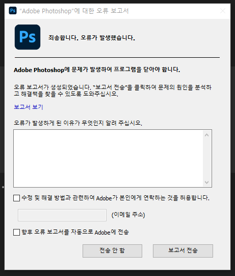 포토샵 오류가 발생했을 때
