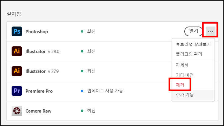 아래 메뉴 중 [제거]가 있어요.