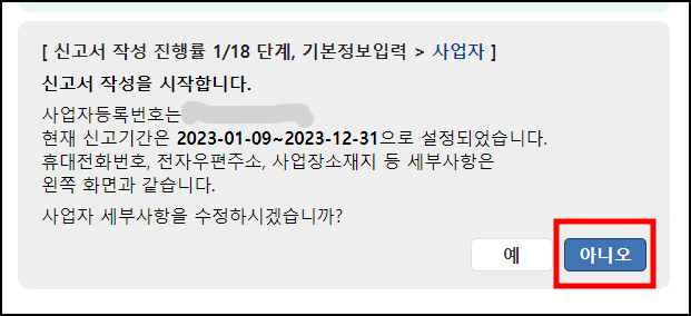 살펴보시고 이상이 없다면 [아니오]를 눌러주세요.