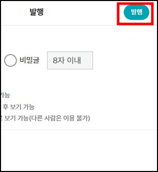 오른쪽 위 [발행] 버튼을 클릭합니다.