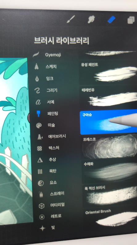 구아슈 브러시로 바뀐 것을 확인할 수 있습니다.