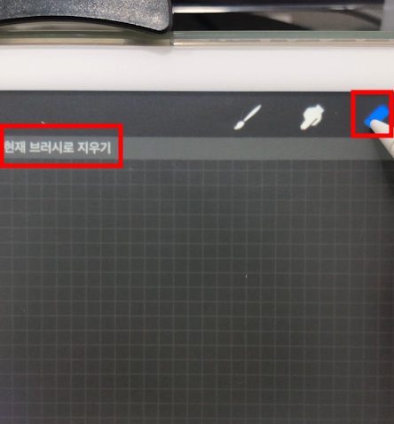 그러면 [현재 브러시로 지우기]라는 팝업이 위쪽에 뜨면서