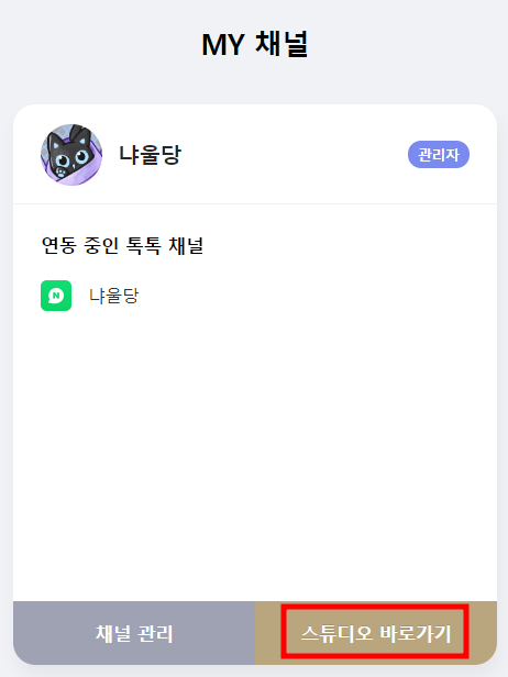 오른쪽 아래 [스튜디오 바로가기] 버튼을 클릭합니다.