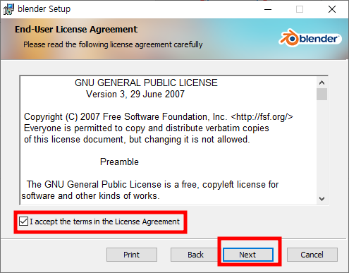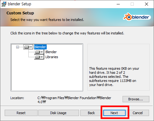 다운받은 블랜더 실행파일을