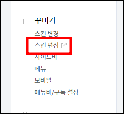 왼쪽 메뉴에서 [꾸미기 > 스킨 편집] 메뉴를 클릭.
