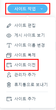 사이트 작업 버튼을 누르면 아래 메뉴들 중 사이트 이전이 있습니다.