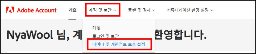 [계정 및 보안 > 데이터 및 개인정보 보호 설정]