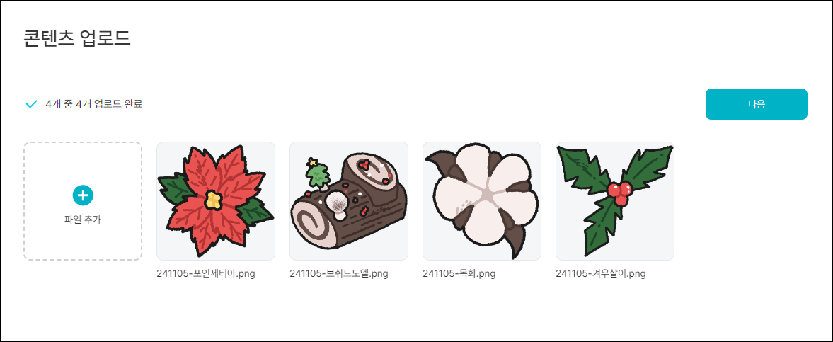 모두 업로드하셨다면 [다음] 버튼을 클릭합니다.