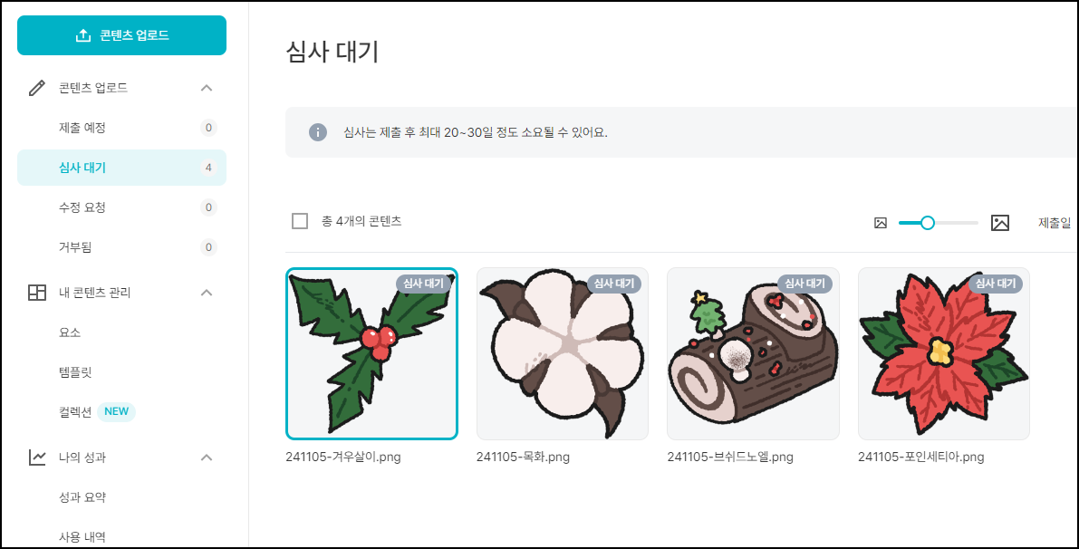 [콘텐츠 업로드 > 심사 대기] 메뉴에서