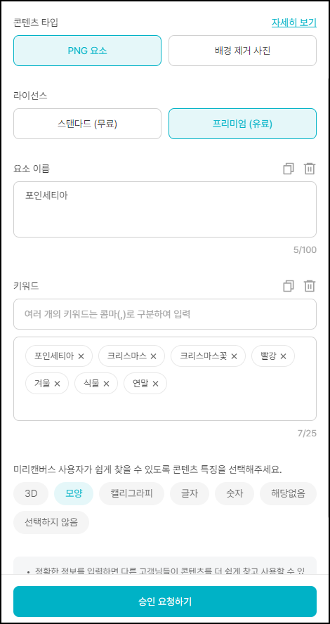 모두 입력하셨다면 [승인 요청하기] 클릭