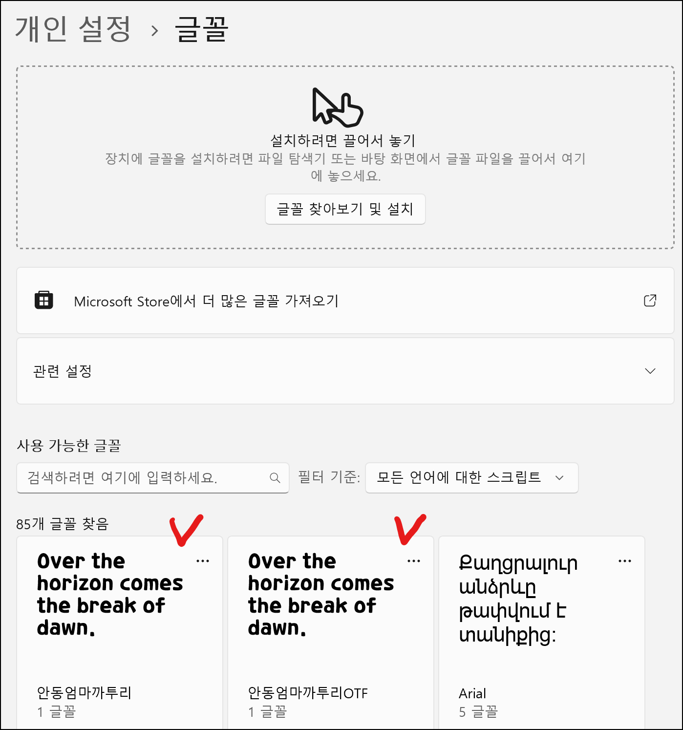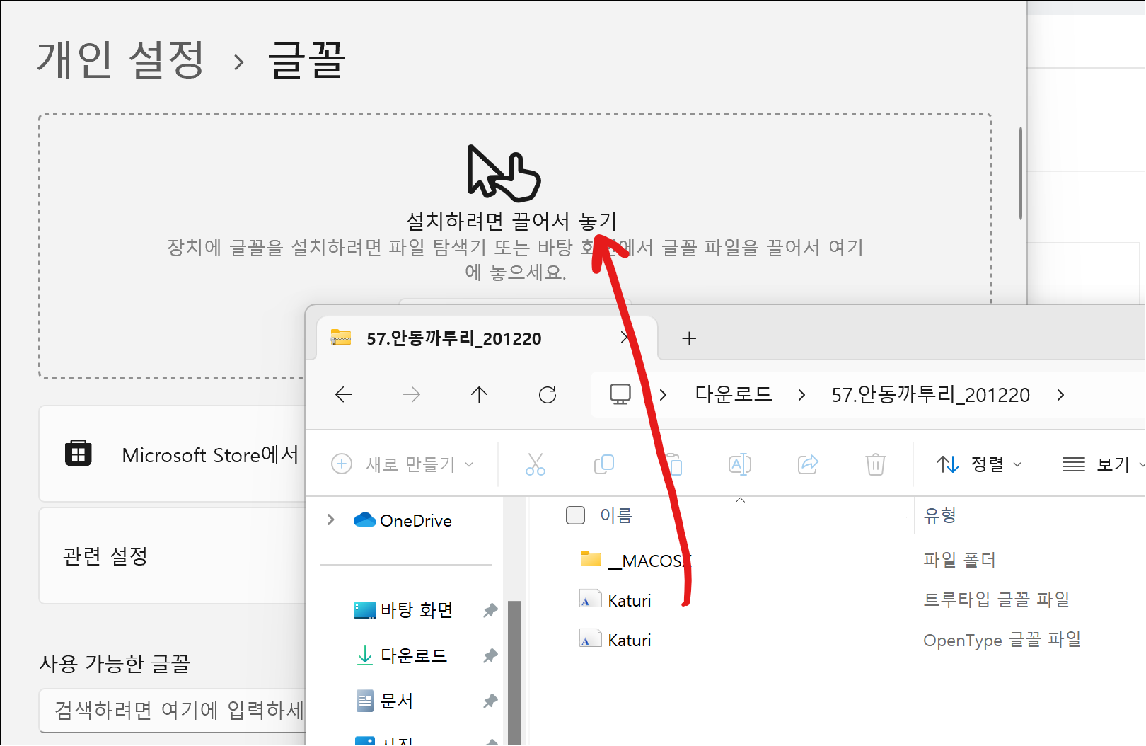 윈도우 11 폰트 글꼴 추가 방법