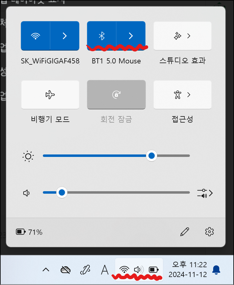 마우스의 베터리 잔량도 확인할 수 있습니다.