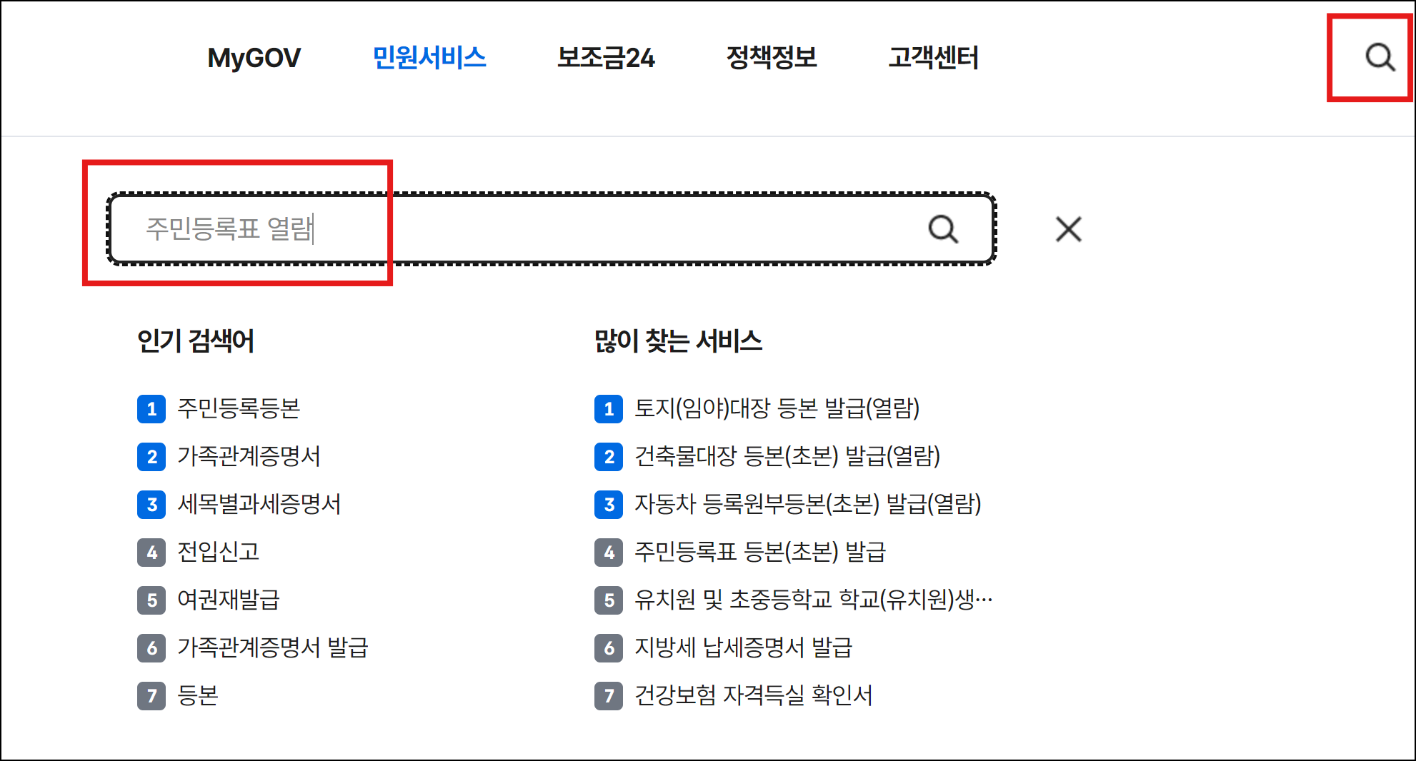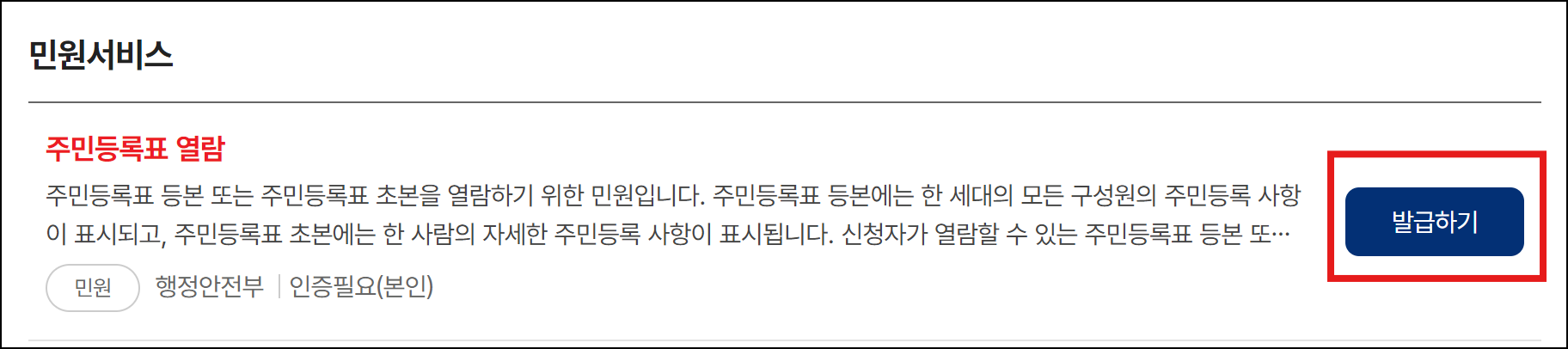 검색 결과로 주민등록표 열람이 나오는데
