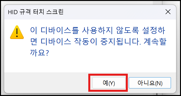 터치 스크린 사용 안 함을 설정해 줍니다.