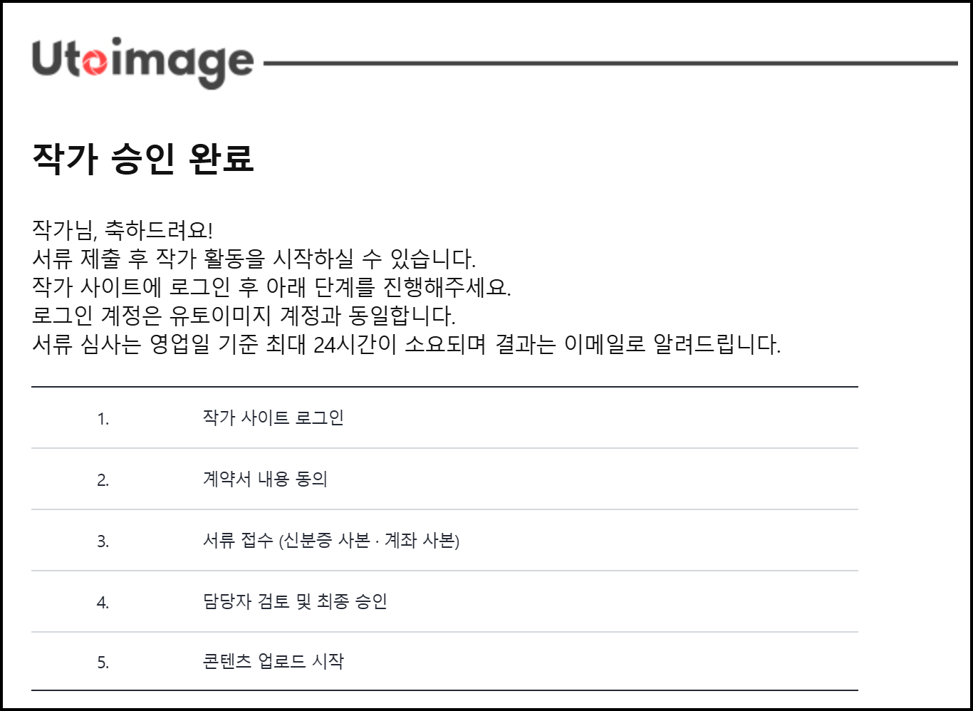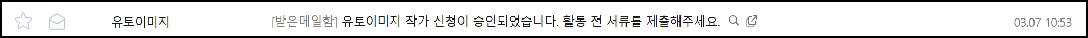 유토이미지 작가 신청 접수를 25.03.05에 하였고