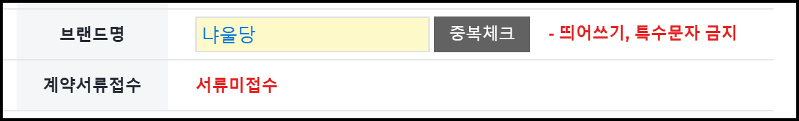 이런 식으로 브랜드명을 적고 필요한 서류들을 제출하면 됩니다. 메일에 쓰여있는 대로 신분증 사본과 통장 사본등이 필요합니다.